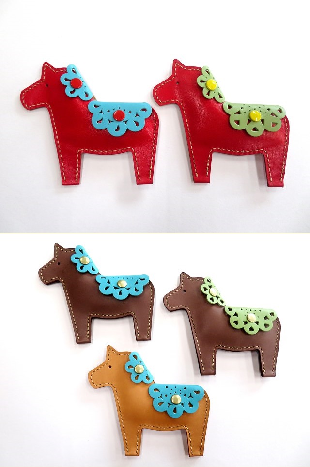 画像上が赤い革のダーラナホースのコインケース。